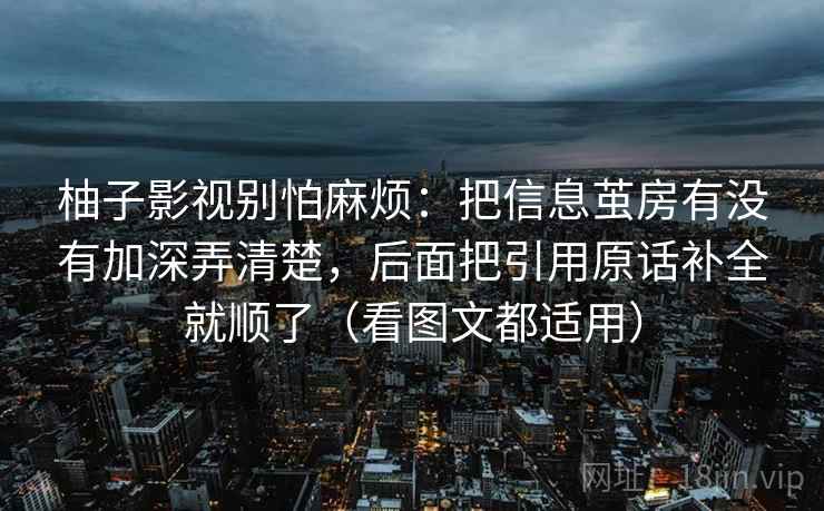 柚子影视:别怕麻烦,拨开信息茧房的迷雾