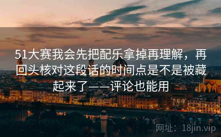 在51大赛这样的高水平赛事中,每一帧画面,每一秒时间都可能蕴含着创作者的匠心。掌握“剥离配乐,核对时间点”这个方法,让你不仅能欣赏作品的表面光鲜,更能洞察其深层的结构与意图。下次观看精彩视频时,不妨试试这个方法,你会发现一个全新的观赏维度,而你的评论,也将因此而更加有深度和价值。