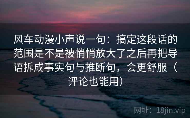 最近在风车动漫社区里,听到一句挺有意思的“悄悄话”:“搞定这段话的范围是不是被悄悄放大了之后再把导语拆成事实句与推断句,会更舒服(评论也能用)”。这句话一听,就透着一股子琢磨劲儿,也触及到了我们日常沟通和内容创作中一个挺普遍的问题:如何让信息传递更有效、更令人接受,甚至能在评论区引发积极的讨论?